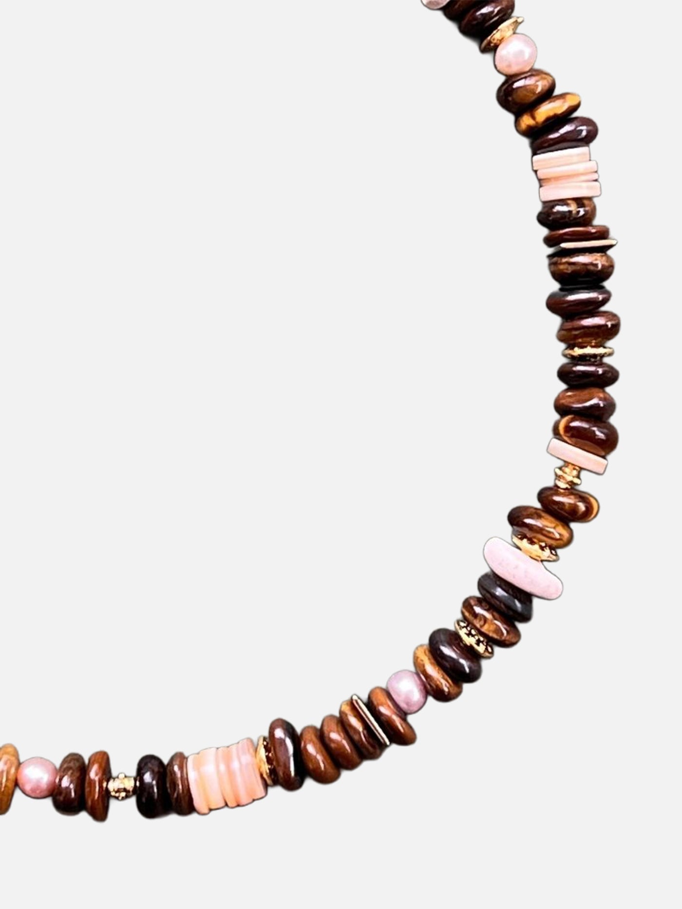 L’Atelier des Perles’de her parça, doğanın ilhamı ve el emeğinin zarafetiyle şekillenen, kendine özgü bir hikâyedir. Nadir bulunan doğal taşlar, el yapımı cam ve seramik boncuklar, barok inciler, kabuklar, ahşap boncuklar, renkli iplikler ve dokular; su, hava, toprak ve ateşin enerjisiyle harmanlanarak hayat bulur. Sadece bir takı değil, kendini ifade etmenin, renklere ve hayata duyulan sevginin samimi bir yansımasıdır.