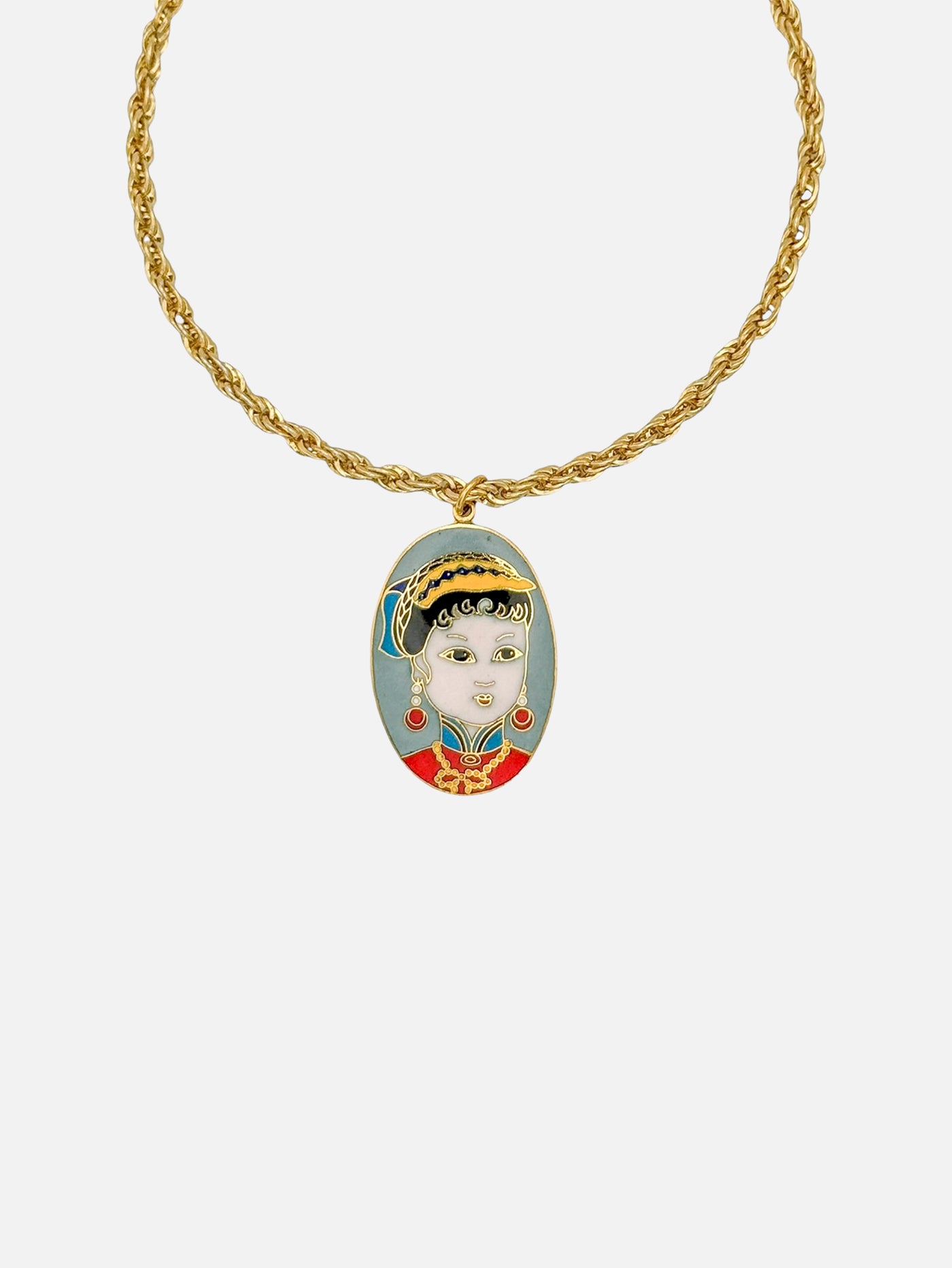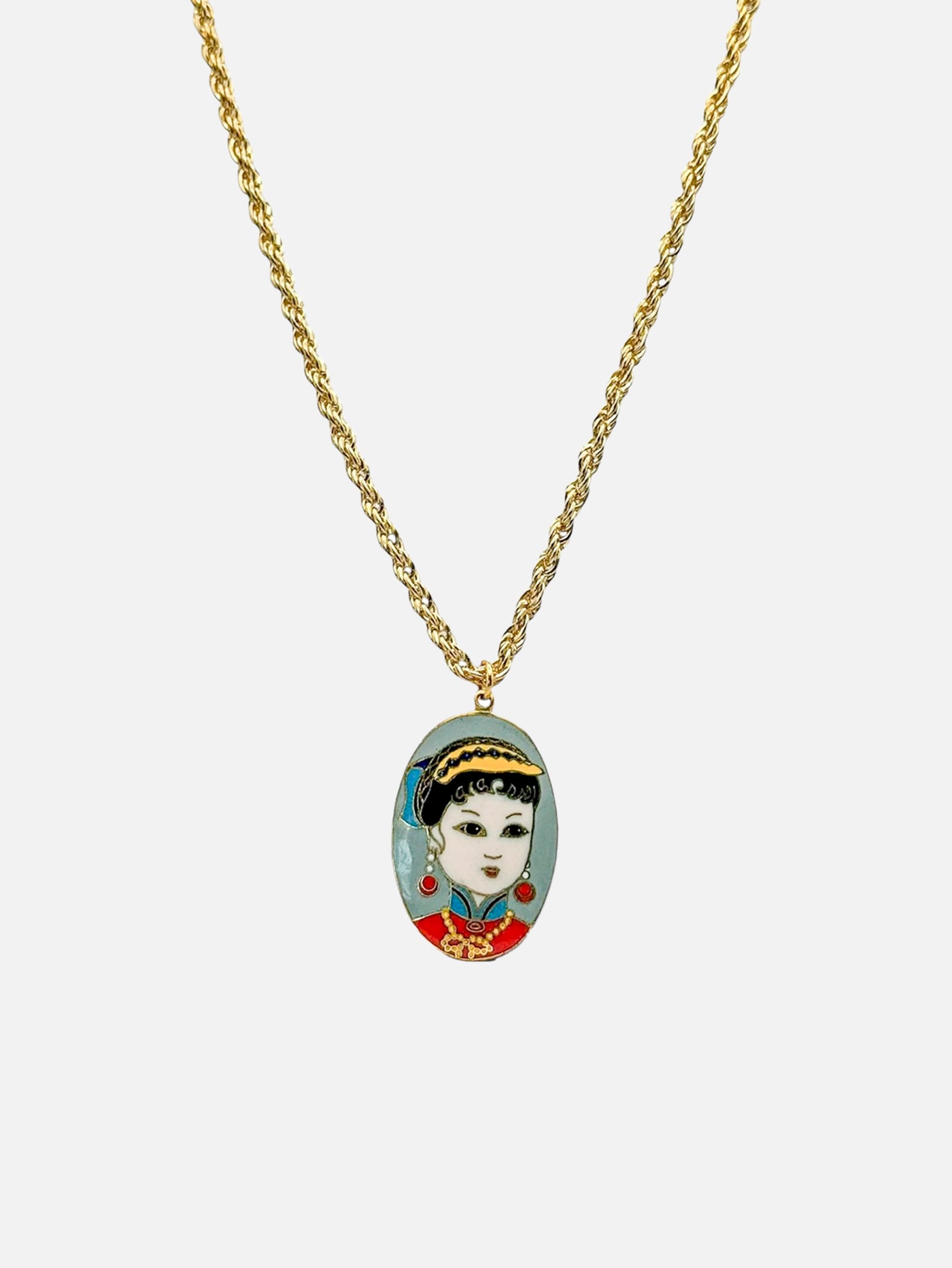 Tasarım: Rope zincir ve Geisha cloisonné kolye ucu; Geisha güzellik, zarafet ve inceliği simgeler